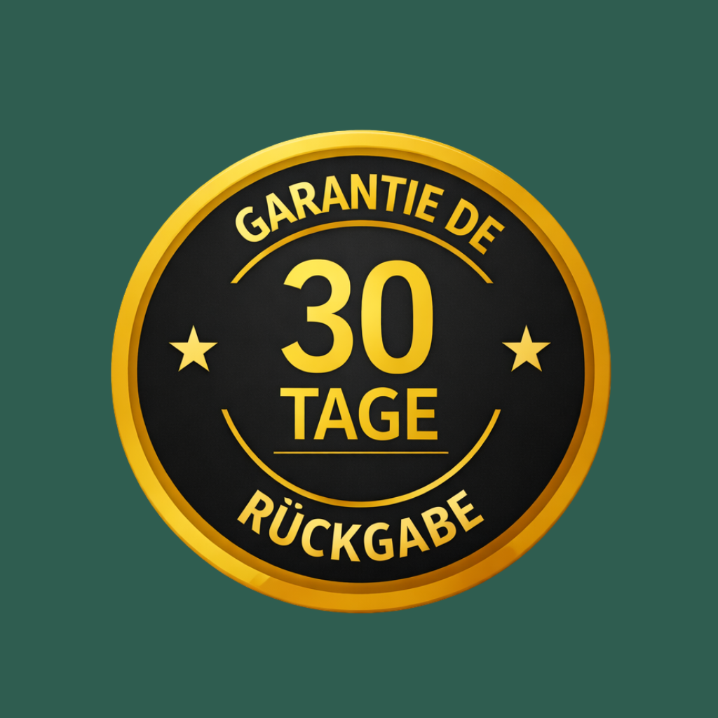Wenn du innerhalb von 30 Tagen nach Erhalt des Produkts mit deinem Kauf nicht zufrieden bist, kannst du ihn zurückgeben und wir erstatten dir 100 % des Geldes – ohne Fragen.